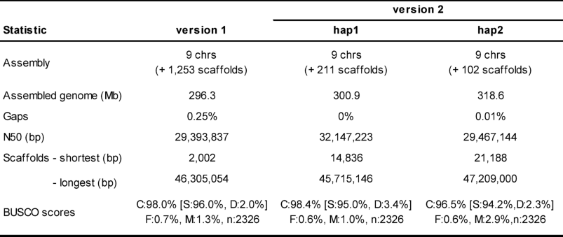 Table 1 Gillenia v1 and v2 genome assembly metrics.