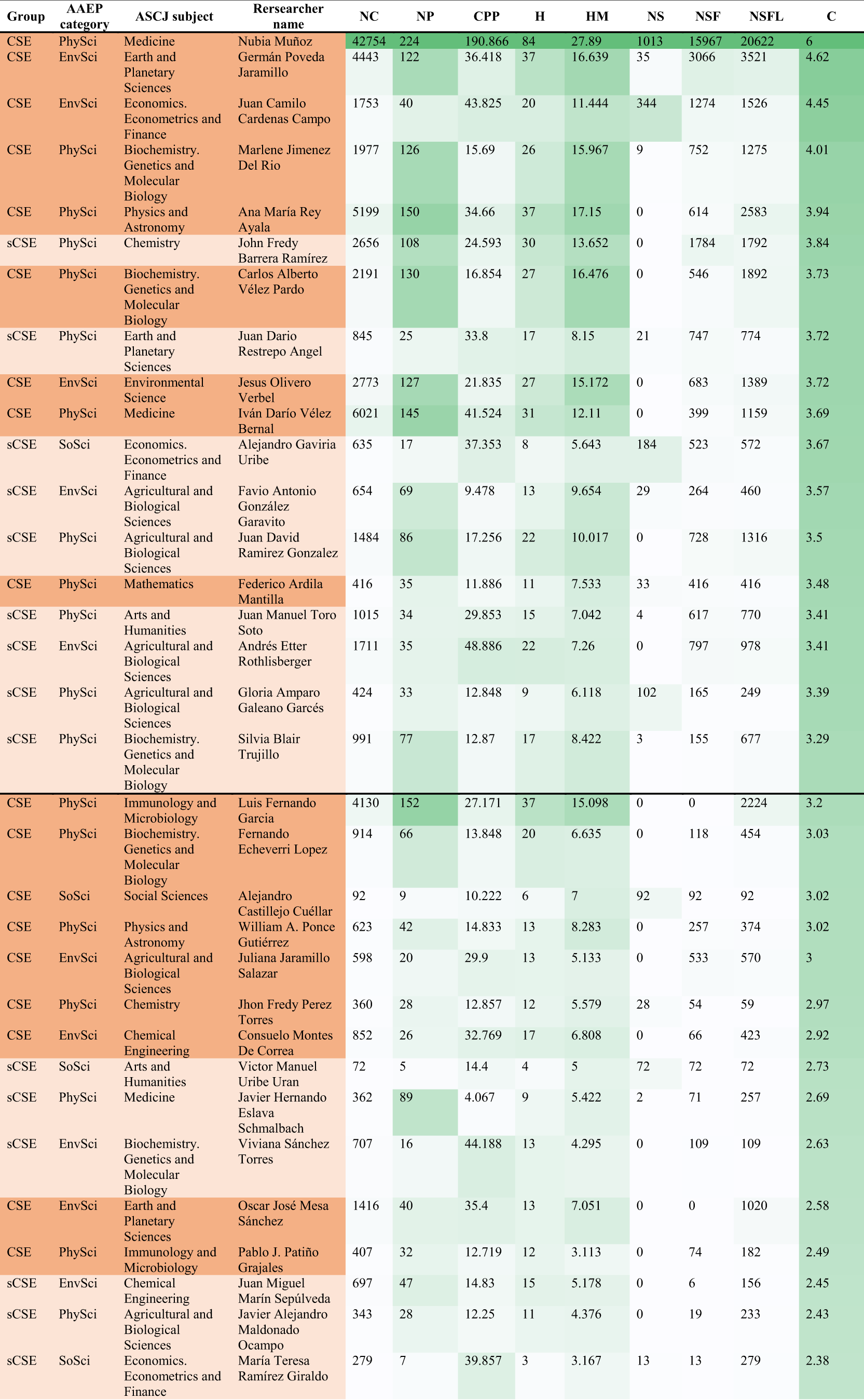 Table 2 Composite citation indicator (C) for both the CSE and sCSE.