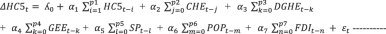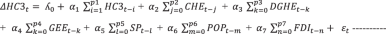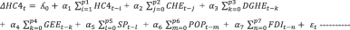 To explain the systematic impact of CHE, DGHE, GEE, SP, POP, and FDI on human capital proxied by HC1, HC2, HC3, HC4, and HC5; this study applied the following ARDL equations to examine the short-run and long-run relationship among modeled variable. The specific equation is given below: