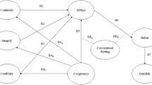 The scales were adapted from previous studies (see Table 2). Specifically, the Perceived Sincerity Scale was adapted from Speed and Thompson (2000) (four items). The congruence construct (perceived fit) sponsorship scale was adapted from Dreisbach et al. (2021) (three items), the gambling attitude (five items) and bet intention (three items) scales were adapted from Leng et al. (2021), and the attitudes towards the sponsor’s brand scale from Na and Kim (2013) (three items). A 5-point Likert scale was used to measure the independent variables. The one-item gambling behavior scale was adapted from Moore and Ohtsuka (1999) (one-item).