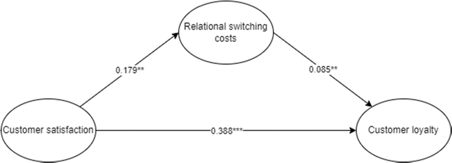 Customer satisfaction → Relational switching costs → Customer Loyalty | 0.017 | 0.050 | Partial mediation |
