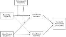Dynamic capabilities are regarded as a firm’s capacity to flexibly use and rearrange its assets in response to external and internal alternations (Achi et al. 2022; Mousavi et al. 2018). Green dynamic capability refers to a company’s ability to adapt and respond to changes in the external environment related to sustainability, such as changes in consumer demand, changes in regulations, and new technologies (Guo et al. 2020). It relates to a company’s ability to identify and respond to sustainability-related opportunities and threats and to continuously develop and improve its sustainability-related knowledge and skills (Guo et al. 2020; Mousavi et al. 2018). Green dynamic capabilities enable companies to integrate their existing resources sustainably, leading to the greening of products and processes and the efficient utilisation of resources (Rodrigo-Alarcón et al. 2018; Teece 2018). A company’s capacity to accept ecological management practices quickly is crucial for its success in green innovation, and this ability is largely determined by its green dynamic capabilities (Sun et al. 2020). Joshi and Dhar (2020) highlight the necessity of enhancing green dynamic capabilities to promote long-term green innovation and ecological sustainability in firms. Green dynamic capabilities play a vital role in the realisation of green innovation outcomes such as green product innovation and green process innovation, resource and energy conservation, technological advancements in pollution reduction, and green product design (Ferreira et al. 2020). The link between green dynamic capabilities and eco-friendly creativity, including the innovation of products and processes, is well established in the literature (Chen and Chang 2012). In general, green dynamic capabilities enable firms to identify and exploit opportunities for green innovation, while green innovation contributes to the development of green dynamic capabilities, and both contribute to the development and implementation of effective sustainability strategies that enable companies to succeed in an ever-changing and increasingly sustainable business environment (Yu et al. 2022; Yousaf 2021).