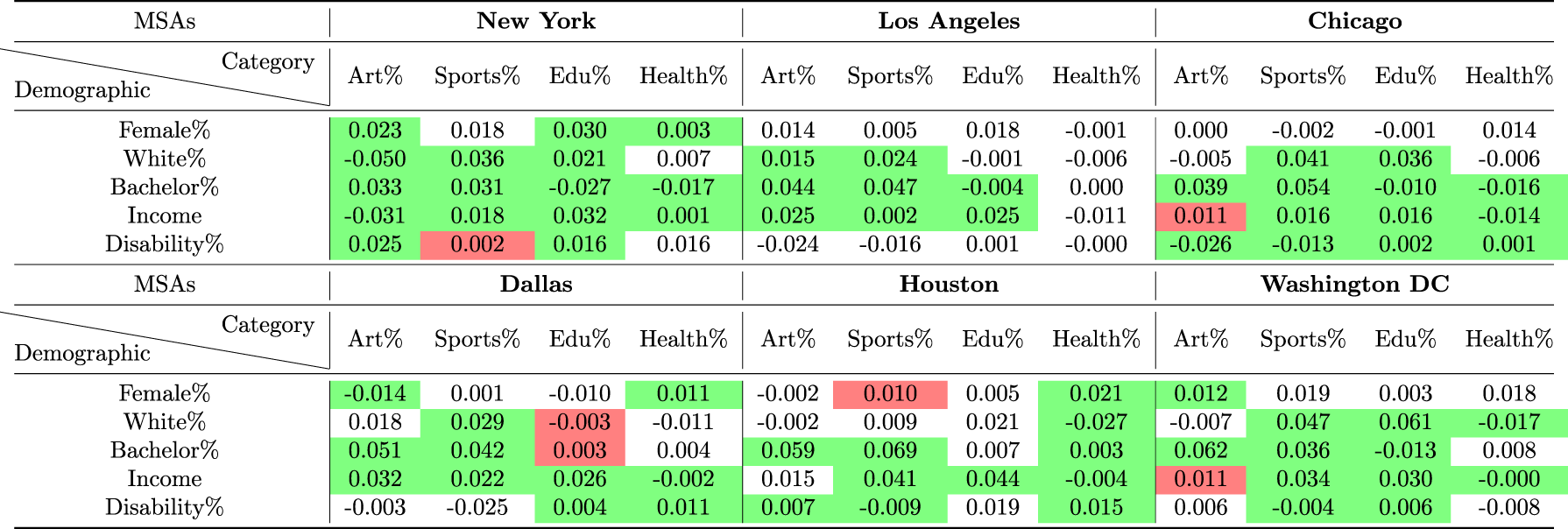 Table 3 Regression coefficients between each demographic feature and its proximity with POI categories in the embedding space.