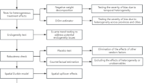 Among them, \({{EF}}_{{it}}\) is the explanatory variable indicating economic fluctuations \({{HQD}}_{{it}}\) is also used as the explanatory variable indicating the level of high-quality economic development and did indicate the carbon emission trading market pilot policy as the core explanatory variable. \({X}_{{it}}\) denotes the various types of control variables and \({\varepsilon }_{{it}}\) is the random error term, while provincial and municipal fixed effects (\({\tau }_{i}\)) and year fixed effects (\({\gamma }_{t}\)) are also included.