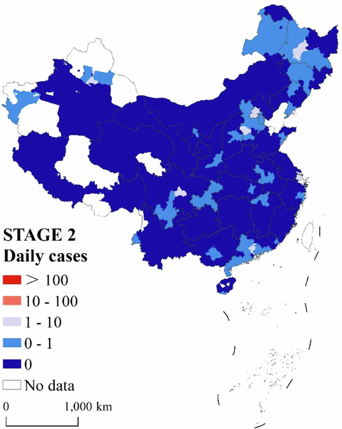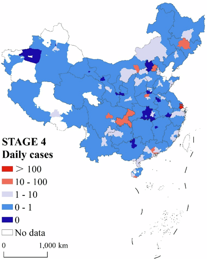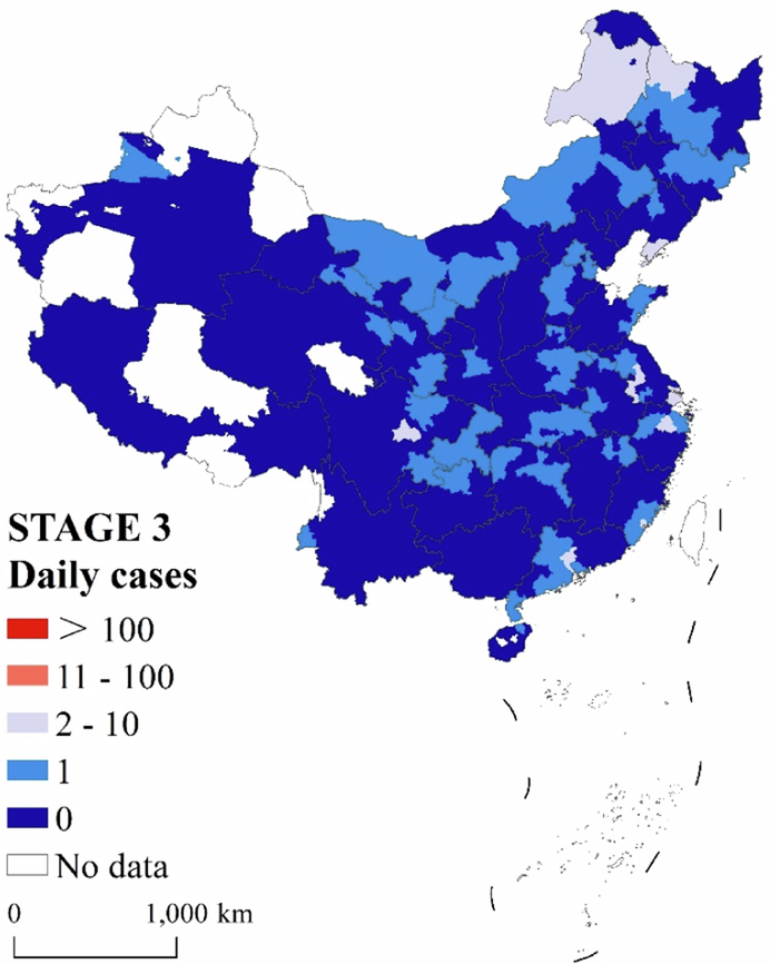 Typical city | Wuhan had the highest number of new cases during this stage, and other cities in Hubei Province as well as cities in neighboring provinces, were also affected. | Sporadic outbreaks have occurred in major cities such as Shanghai, Shijiazhuang, Guangzhou, and Beijing, as well as in some border cities, with some randomization. |