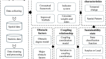 This study employs six methods to ensure rigorous and comprehensive analysis in exploring the co-evolution between TD and ES (Fig. 4). (1) The entropy-weighted TOPSIS method objectively evaluates and ranks the comprehensive levels of TD and ES across cities. Its objective weighting avoids subjective bias, while the proximity-based ranking provides clear relative comparisons, making it particularly suitable for this study. (2) The Haken model quantifies the synergy between TD and ES subsystems and identifies the order parameter governing system evolution. It effectively captures nonlinear interactions and self-organizing mechanisms in complex systems, making it well-suited for synergy analysis. (3) The Hodrick-Prescott filter decomposes the synergy score series into long-term trends and short-term fluctuations to delineate evolutionary stages. As a standard time-series decomposition tool, it objectively reveals intrinsic trends, making it appropriate for identifying continuous evolutionary phases. (4) The semi-variance function model quantifies and reveals the spatial variation of TD-ES synergy scores. As a core geostatistical tool, it accurately characterizes spatial association structures and provides the basis for Kriging interpolation. (5) Spatial Markov chains analyze the transition probabilities of cities across synergy levels under neighborhood effects. Their applicability stems from overcoming the traditional Markov chain’s neglect of spatial interactions, making them ideal for analyzing spatially dynamic transitions. (6) The obstacle degree model identifies key restrictive indicators hindering TD-ES co-evolution. By integrating indicator weights with deviation degrees, it quantifies obstacle levels, enabling scientifically objective identification of constraints and providing guidance for targeted policymaking. Further details on each method are provided in Sections “Entropy weight TOPSIS Method”–“Obstacle degree model”.