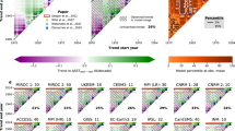 Examining the 1900-1991 period using several oceanic datasets31,32,33, ref. 34 found a La Niña-like trend of cooling in the central-to-eastern Pacific Ocean and a strengthening of the western/central Pacific westward SST gradient. With the more recent expansion of observational datasets and a longer climate record, it appears that this overall tendency has continued through at least 20202,35,36. Using some of the most frequently cited SST datasets (HadISST117, Kaplan Extended SST33, ERSSTv316, ref. 37 determined that the zonal SST gradient had strengthened from 1880 to 2005, most prominently during boreal fall and winter. SST datasets that include more recent time periods show the continuation of La Niña-like trends2,36. Analyses of companion SLP datasets (HadSLP238, Kaplan SLP39, ERSLP40) showed disagreement in the zonal SLP gradient trend among the datasets, with HadSLP2 and Kaplan SLP suggesting weakening during the boreal spring, and ERSLP exhibiting no statistically significant trend for any season37. Upon removing the linear component of ENSO dynamics from various SST datasets using Linear Inverse Modeling (LIM), a more consistent strengthening of the SST gradient over 1900-2010 was discovered1. The LIM was used to filter out additional internal variability and resulted in more agreement in the trend among various SST datasets23 (right panels of Fig. 1A).