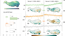 The time range of the analysis in this study is 1979–2021: (i) The Northern Hemisphere weekly snow cover extent (SCE) records on 25 km × 25 km grids were obtained from the National Snow and Ice Data Center (NSIDC)44. (ii) The other weekly SCE records were extracted from the National Oceanic and Atmospheric Administration (NOAA) Climate Data Record (CDR)45. Both the NSIDC and NOAA weekly SCE datasets were based on multiple satellite and sensor retrievals. (iii) The daily snow depth product was obtained from the Big Earth Data Platform for Three Poles46. These data are based on a passive microwave remote-sensing method. The original products have been converted into the monthly snow depth on 0.25° grids. (iv) The monthly snowfall data on 0.25° grids were obtained from the European Center for Medium-Range Weather Forecast’s fifth generation reanalysis (ERA5)47. (v) Polar pathfinder daily sea-ice motion vector data (latest version 4) were obtained from NSIDC48, which are on 25 km × 25 km grids and derived from multiple sensors, e.g., the advanced very high resolution radiometer (AVHRR), advanced microwave scanning radiometer (AMSR), scanning multichannel microwave radiometer (SMMR) and special sensor microwave imagers (SSM/I). (vi) Monthly data on 0.25° grids for surface wind stress, Ekman transport, sea-ice thickness and sea-ice concentration were obtained from the fifth generation of ECMWF’s ocean reanalysis system (OCEAN5) and its real-time analysis component (ORAS5)49. (vii) Monthly mean sea ice concentration and sea surface temperature data on 1° grids were obtained from the Hadley Center Sea Ice and Sea Surface Temperature dataset (HadISST)50. (viii) The daily and monthly data for atmospheric circulation fields (i.e., winds, geopotential height, and specific humidity) on 2.5° grids and surface energy fluxes (i.e., shortwave radiation, and sensible heat) on T62 Gaussian girds were obtained from the National Centers for Environmental Prediction–Department of Energy (NCEP–DOE) Reanalysis-251.