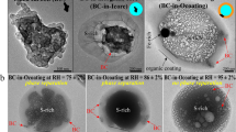 The LLPS significantly influences the microstructure of aerosol particles by separating organic from inorganic materials, which even redistributes BC from the Icore (Fig. 1A-iii) to the Ocoating (Fig. 1A-iv). The BC redistribution significantly alters the optical absorption of aged BC particles, reducing light absorption by 28–34% at 550 nm32. Figure 1A shows these transformations through four distinct mixing structures: BC, CS, PS-CS, and R-CS models. To understand the non-light-absorbing SOA (SOAclean)/SOABrC effects on light absorption of individual particles, three various thicknesses—thin, moderate and thick—were applied to both PS-CS (1.2, 7.0 and 12.8 nm) and R-CS (69.6, 139.2 and 208.8 nm) models.