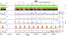 The measurement strategy involved hovering for 120 seconds at each altitude before ascending 20 meters. Flights were typically repeated every 3 hours, increasing to 1.5-hour intervals at sunrise and sunset. The presented campaign was conducted during several 24-hour periods in May 2023 for the aerosol-focused configuration and during August 2023 for gas-focused: May 4th–5th, 8th–9th, and 23rd–24th and August 25th–26th, and 28th–29th, a total of 10 different days. All flights were conducted at the Weizmann Institute campus, Rehovot, Israel. During the campaign, two extreme pollution events occurred: the first was a rapid dust event that occurred during May the 5th, and the other was a biomass burning event that occurs annually in Israel (Lag Ba’Omer), when nationwide bonfires are being held, during the night of May the 9th and is studied extensively by our lab44,45,46,59. Measurements were collected from 66 flights per height, or approximately 2 hours per altitude across varying environmental conditions (temperature, humidity, pressure, weekday, hour, etc.) to characterize the diurnal cycle presented in text. The ratio of weekends to weekdays flights is about 1:2, respectively. The total aerosol-focused flights used in the study were 36, in a ratio of 1:1 of background to events. Beside the data collected using the portable system, other freely available datasets were used to obtain the following ground measurements at the same times: NO, NO2, and O3 measured by the Israeli Environmental Protection Ministry at the closest Rehovot station, and global radiation (consisting of both scattered and direct radiation) and ground wind vector measured by the Israeli Meteorological Service. For atmospheric stratification analysis, we use virtual potential temperature and air density, accounting for both pressure, temperature and humidity42. Additionally, absolute humidity was calculated from relative humidity and temperature. All ground-level measurements were also taken in multiple time lags, -3,-2 and -1 h before the flights, as well as at the same time (total of 4 lags). All times are shown in local time.