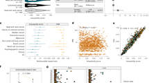 Having demonstrated that AS0.2 and FGA0.2 predict survival following immunotherapy for both high-TMB and low-TMB patients at the pan-cancer level, we next asked whether these scores could also predict survival in individual cancer types. As a result, in the Samstein et al.’s cohort, FGA0.2 had significant HRs for pan-cancer (HR = 1.36, P < 0.0001) and in three individual cancer types in Kaplan–Meier survival analysis, i.e., renal cell carcinoma (HR = 2.03, P = 0.01), melanoma (HR = 1.78, P = 0.002), and bladder cancer (HR = 1.73, P = 0.009; Fig. 3a). In comparison, AS0.2 yielded significant Kaplan–Meier univariable HRs in bladder cancer and renal cell carcinoma, and marginally significant multivariate HRs in melanoma (Supplementary Fig. 3). Comparison of HRs using AS0.2 or FGA0.2 in a multivariable Cox model with TMB (binned at the 80th percentile) and ICB drug class yielded very similar result (Fig. 3a and Supplementary Fig. 3). Overall, we conclude that FGA performs comparable to or better than AS in predicting immunotherapy response in individual cancers, suggesting that it is the overall genome affected by CNAs (rather than the individual CNA length or mechanism of formation) that drives the observed CNA-immunotherapy response associations.