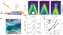 Although XPS measurements indicate a high hole-carrier density greater than 1014 cm−2, we also investigated the carrier type and carrier density of doped samples using different methods. As shown in Fig. 4a, we measured the thermopower by applying a temperature gradient between two electrodes on a graphene sample using two Peltier elements (Laird Technologies CP1.0–31–05L). These Peltier elements were wired in series with a DC power supply (KEYSIGHT E3642A), and their temperature difference was monitored using a temperature controller (Lakeshore model 335) and alumel–chromel thermocouples (SAKAGUCHI E.H VOC CORP. TCKT0051). The thermoelectromotive force was measured using a voltmeter (KEYSIGHT 34420A). As shown in Fig. 4b, a positive relation between the thermoelectromotive force and the temperature difference of both pristine and doped graphene films is observed, indicating a positive thermopower. Therefore, the carrier type of graphene films doped with Mes2B+[(C6F5)4B]− is unambiguously determined to be holes.42