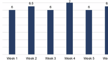 Figure 3 shows the plot of average number of reported HA days by week. On average, fewer HA days were reported over time (though this could be that participants were not using the diary or the app as often in later weeks as demonstrated in Fig. 2). Figure 4 shows the plot of difference in HA days for high (y axis = 1) and low (y axis = 0) PMR users. On average, high users had 4 fewer days of reported HAs in month 2 compared with month 1, whereas low PMR users had only 2 fewer HA days in month 2. The difference in changes in HA days for low and high PMR users was significantly different than zero (p value = 0.02). With the informative missingness, using the same approach as above to compare changes in HA days in high PMR users and low PMR users, the mean HA days were reduced by 2 days in high PMR users from month 1 to 2, however, mean HA days increased by 3 days in low PMR users. Reduction in HA days from month 1 to 2 for high PMR users was different than for low PMR users (p value = 0.002).