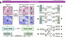For image segmentation task, we use datasets from Breast Cancer Semantic Segmentation31 (BCSS) and Cancer Instance Segmentation and Classification32 (PanNuke), which were derived from The Cancer Genome Atlas (TCGA) project. We use additional segmentation datasets such as ConSep33, Zenodo Lung Cancer34 and Polyp28. The BCSS dataset holds more than 20,000 segmentation annotations of breast cancer tissue regions. The number of samples in the training set, validation set, and test set are 30,760, 5429, and 4021, respectively. The PanNuke dataset includes histopathology images that were semi automatically generated nuclei instance segmentation and classification, covering tremendous nuclei labels across 19 different tissue types. It is composed of 2661 samples and 205,343 labeled nuclei, each with a ground truth mask. The ConSep dataset consists of 41 H&E stained image tiles, each of size 1000 × 1000 pixels at 40× objective magnification. Images were extracted from 16 colorectal adenocarcinoma (CRA) WSIs, each belonging to an individual patient. The Zenodo Lung Cancer dataset is a dataset of 85 tiles of size 1024 × 1024 pixels with cell level annotations extracted from 9 lung WSIs. The annotations define the cells’ nuclei shape and classify each cell as either cancerous or non-cancerous. The Polyp dataset includes 1000 frames taken from colonoscopy videos, which feature numerous instances of polyp. The ground truth is represented by a mask that corresponds to the area of the image occupied by the polyp. To ensure consistency and compatibility with deep learning models, all whole slide images (WSI) have been cropped into small patches using a sliding window method. Each image is in the PNG format of 224 × 224 and 512 × 512 pixels. All images have been resized into the size of 224 × 224 pixels to ensure uniformity for histology classification task. We utilize z-score normalization with default mean and standard deviation to rescale the pixel values. The implementation of these standardization protocols guaranteed a consistent and harmonized approach throughout all imagery, thereby streamlining their incorporation into the successive phases of the model’s learning and assessment procedure.