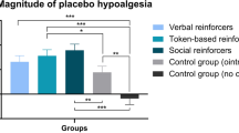 Hunter, T., Siess, F. & Colloca, L. Socially induced placebo analgesia: a comparison of a pre-recorded versus live face-to-face observation. Eur. J. Pain. 18, 914–922 (2014).