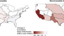 Extensive GW use has benefited global economic development and has improved food security and livelihoods8. However, substantial expansion of GW development has also caused severe water depletion, reduced freshwater access and subsurface flows, led to cross-border tensions and increased inequity between those who can access the resource and those who cannot9,10,11. Depletion of GW has also contributed to sea-level rise and has even changed the tilt of the Earth’s axis12. Sustained GW overdraft also lowers aquifers’ hydraulic head, raising pumping costs13, causing land subsidence and saltwater intrusion14,15, threatening irrigated agriculture16 and contributing to greenhouse gas emissions17,18. Solar-driven irrigation pumps reduce emissions but are considered to encourage more rapid GW depletion19,20. Several studies suggest that unsustainable GW use will eventually jeopardize water and food security and rural livelihoods when wells dry up or when it becomes uneconomical to irrigate crops21,22, leading to abandonment of GW-fed farms23.