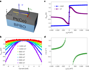 A.L.E., T.N., C.B.E., I.A.H. and R.R. conceived the research. A.L.E. and Y.C. grew films and fabricated devices from BPBO/Pt(Co) samples. I.A.H. grew films and fabricated devices from LSMO/BPBO samples. I.A.H., M.M.M., X.H. and D.C.R. performed the ST-FMR measurements and analysis. N.G.C. and M.S.R. conducted the nonlinear Hall I–V measurements. Y.C. and T.N. carried out the device-switching experiments. G.G. and E.Y.T. performed the theoretical calculations. S.S. performed the STEM measurements. A.L.E., N.G.C. and C.B.E. wrote the paper with contributions from all other co-authors.