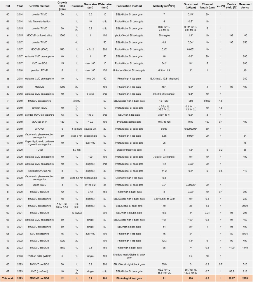 Extended Data Table 1 Comparison of overall device integration results based on large-area TMD films