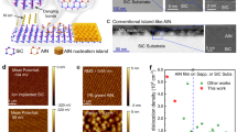 A schematic of a multifinger SLCFET is shown in Fig. 1a. An epitaxial grown material featuring ten periods of AlGaN/GaN superlattice structure created ten 2DEG channels. Side-gated electrostatic control on these channels was established using a fin structure, which was conformally coated with dielectric (SiN) and wrap-around gate metal. SiN/GaN forms type-II band alignment which ideally forms a hole-barrier-free interface for excellent device reliability12,27. A typical 60-µm-wide two-finger SLCFET possesses over 1,000 such fins between source and drain. The mean fin width was in the range of 30 to 100 nm, and the dielectric thickness was in the range 5 to 35 nm. The current–voltage (I–V) measurement in the linear regime is plotted in Fig. 1b. The multiple transconductance (gm) peaks in the on state (Fig. 1b) are attributed to the varying response of the different 2DEG channels in the fin to the gate electric field12,28, that is, top, sandwiched and bottom 2DEG channels. The inset of Fig. 1b shows the ID–VDS characteristic of the SLCFET, which reveals a classic kink effect showing the presence of holes in the bulk of the semiconductor below the fin29. The subthreshold region of operation from Fig. 1c shows two distinct regions: (1) −10 V < VGS < −9.5 V where ID increases with a constant slope of around 80 mV per decade; and (2) −9.5 V < VGS < −8 V where the ID and gm exhibits ‘stretching’ before entering the semi-on state. The presence of these two regions is uncharacteristic of conventional GaN HEMTs26,30. The logarithmic plot of gm reveals shoulders in this stretched region (Fig. 1d). The location of the shoulders at more negative VGS compared with that of the gm peaks in the on state indicates channels with a more negative threshold voltage, |VT|, than is apparent in Fig. 1b. The value of ID at these gm shoulders was approximately three orders lower than ID at VGS = 0 V where all fins conduct.