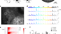 Electrophysiological data were acquired by inserting two carbon electrodes (Carbostar-1, Kation scientific; Impedance at 1 kHz: 0.4–1.2 M\({\mathrm{\Omega }}\)) into the AC of the left hemisphere of the bat. The electrodes were separated by at least 500 µm. Two silver wires, touching the dura of non-auditory areas in the contralateral hemisphere, and separated by at least 1 mm, were used as reference electrodes. Such two-reference configuration is useful to minimize issues arousing from common referencing. The depths of the carbon electrodes were accurately controlled from outside of the chamber using two Piezo manipulators (PM-101, Science products GmbH, Hofheim, Germany), one for each electrode. Recordings were performed at depths of 300–500 µm from the cortical surface, corresponding to layers III/IV of the primary AC, although we cannot discard the presence of units obtained from high-frequency fields (see ref. 24). Electrical signals were amplified (Dagan EX4-400 Quad Differential Amplifier, Minneapolis, MN; gain = 100, filter low cutoff frequency = 0.01 Hz, high cutoff frequency = 3 kHz), and analog-to-digital converted (RP2.1 Enhanced real time processor, Tucker-Davies Technologies, 2 channel A/D converter, 2 channel D/A converter, 24-bit precision, Alachua, FL) with a sampling frequency of 12.2 kHz, before being sent to the recording computer via USB. The data were stored and monitored on-line with a custom-written Matlab (version 7.9.0.529 (R2009b), MathWorks, Natick, MA) software.