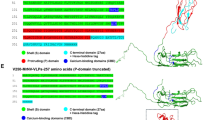 First, the crystal packing of PvNVPd (P212121) reflects the intermolecular organization of the two P-domain dimers with a bending angle of ~110°, suggesting that the existence of this putative conformation in the T = 3 PvNV virions arises from the simultaneous rotation of A/B dimer and the translation of C/C dimer (Fig. 5b). In the interface of this parallel model, the three turns β1/β2, β6/β7, and β7/β8 from one PvNVPd monomer are in close proximity to those of one symmetry molecule in the absence of metal ions. Similar to PvNVPd, the symmetry of MrNVPd dimers (P3221) also generates a dimer–dimer conformation, but with additional metal ions coordinated in the dimer–dimer interface and with a slightly altered bending angle of ~120° (Fig. 5b). Three key residues Glu270, Glu341, and Asp355 reveal a negatively charged interface and work together with three Zn2+ ions through hydrogen bonds connecting three turns β1/β2, β6/β7, and β7/β8, respectively (Fig. 4b). Examination of the intermolecular MrNVPd dimer–dimer interaction reveals that Glu270, Glu341, and Asp355 donate major hydrogen bonds to stabilize this conformation (with the exception of the 311ExD313 motif), suggesting that the negatively charged Asp313 on the MrNVPd monomer might exist as a potential metal-binding site without participating in the MrNVPd dimer–dimer structure.