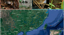 For the phylogenetic analyses, sequences of five Nidirana species were used in combination with sequences of three outgroup species, Odorrana tormotus, O. exiliversabilis and O. margaretae67. DNA sequence data were obtained from GenBank (Supplementary Table 7), which were then aligned in MEGA X84 using the Clustal W algorithm with default parameters85. The reconstruction of phylogenetic trees was performed with MrBayes version 3.1.2 software86 using the Bayesian inference method based on the 12 S and 16S rRNA genes. In this process, the chains were sampled every 1000 generations87,88, using the best-fitting nucleotide substitution model (GTR + I + G) and running the MCMC for 100,000 generations. The first 25% of the total trees were discarded as “burn-in” and the remaining trees were used to generate a majority-rule consensus tree and to calculate Bayesian posterior probabilities. The tree was visualized using FigTree v1.3.1. Genetic distances between Nidirana species were calculated in MEGA X using the Tamura three-parameter substitution model89.
