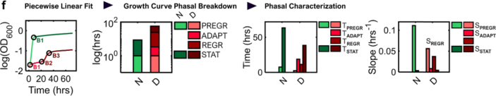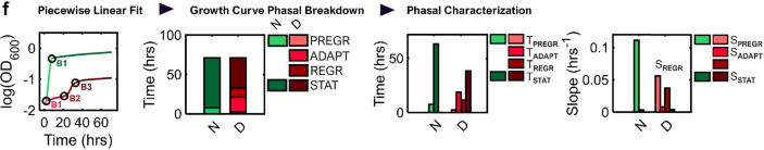 The original version of this Article contained an error in Fig. 2f, in which the incorrect axis label and values were included for the second graph (“Growth Curve Phasal Breakdown”). The correct version of Fig. 2f is: