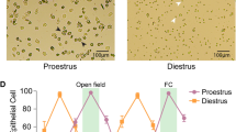 Statistical analyses were performed using SPSS (IBM, version 19) and R (The R Foundation, version 3.5.3). Body tracking positions were obtained using Deep Lab Cut64 and analyzed using a self-written script in Python (Python Software Foundation). Animal sample sizes were determined using a power analysis performed by G*Power (G*Power, version 3.0.1, Franz Faul; power = 0.95, alpha = 0.05, effect size = 0.5, two-tailed). A Levene’s test for normality showed significance for the data, thus nonparametric tests were used for analyses. Because there were no significant sex differences in any stages of the experiment after the first day of baseline (Supplementary Fig. 1 and Supplementary Table 1), data from females and males were pooled together for all analyses (Supplementary Fig. 2). Statistical significance was set at P < 0.05. Graphs were made using GraphPad Prism (version 8).