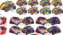 In order to map the association of the deviation scores with cross-diagnostic symptomatology, we performed sparse canonical correlation analyses (SCCA) to relate participant’s scores in the four aforementioned functional domains or their diagnoses, to their whole-brain (unthresholded) deviation maps using an established penalised CCA framework that enforces sparsity18,19. Specifically, we applied variable shrinkage by adding an l1-norm penalty term to stabilise the CCA estimation and ensure the weights for the deviation scores were more interpretable. We follow the formulation outlined in Witten, et al.18., where we refer to for details. In brief, given two data matrices \({{{{\boldsymbol{X}}}}}\) and \({{{{\boldsymbol{Y}}}}}\) with dimensions \(n\times p\) and \(n\times q\) respectively (here, these are the cross-diagnostic factor loadings and whole-brain deviations), and two weight vectors \({{{{\boldsymbol{u}}}}}\) and \({{{{\boldsymbol{v}}}}}\) this involves maximising the quantity \({\rho ={{{{{\boldsymbol{u}}}}}}^{{{{{\boldsymbol{T}}}}}}{{{{\boldsymbol{X}}}}}}^{T}{{{{\boldsymbol{Yv}}}}}\) subject to the constraints \({{{{{\boldsymbol{||}}}}}{{{{\boldsymbol{u}}}}}{{{{\boldsymbol{||}}}}}}_{2}^{2}{{{{\boldsymbol{\le }}}}}1\), \({{{{{\boldsymbol{||}}}}}{{{{\boldsymbol{v}}}}}{{{{\boldsymbol{||}}}}}}_{2}^{2}{{{{\boldsymbol{\le }}}}}1\), \({{||}{{{{\boldsymbol{u}}}}}{||}}_{1}{{{{\boldsymbol{\le }}}}}{c}_{1}\) and \({{||}{{{{\boldsymbol{v}}}}}{||}}_{1}{{{{\boldsymbol{\le }}}}}{c}_{2}\), where the penalties \(p({{{{\boldsymbol{u}}}}})\) and \(p({{{{\boldsymbol{v}}}}})\) are the standard L1-norm. We set the regularisation parameters for each view heuristically (\({c}_{1}=0.9p\) corresponding to light regularisation for the factor scores, \({c}_{1}=0.1q\), corresponding to heavy regularisation for the deviation maps such that no more than 10% of voxels were selected). While it is possible that better performance would be obtained by optimising the regularisation parameters across a grid, we did not pursue that here due to the moderate sample size for the clinical dataset. We assessed generalisability of SCCA by splitting the data in to 70% training data and 30% test 10 times. Finally, we wrapped the entire procedure in a permutation test where we randomly permuted the rows of the behavioural matrices 1000 times to compute an empirical null distribution for significance testing. We performed an additional set of sensitivity analyses to more carefully evaluate the sparse canonical correlation analyses (SCCA). Specifically, we repeated the SCCA, first using a grey matter mask (Harvard Oxford probability thresholded at 30% probability), and then again using a mask of task positive regions (HCP Young Adult group level T-statistic map thresholded at t > 3.6). For ease of interpretation, the results generated using the mask of task positive regions is reported in the main text, while the whole-brain and grey-matter masked analyses can be found in Supplementary Fig. 8.