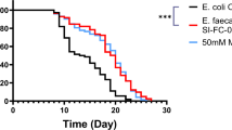 Ten L4 stage worms per strain were placed into individual NGM agar/OP50 plates and incubated at 20°C for 6 or 8 days. Following the first measurement at day 0 (30 min after the worms seeding on the plates), the PP was measured every day for up to 6 days, or every 2 days for up to 8 days. PP was assessed by counting the number of pharyngeal contractions observed under a microscope (Axio Scope.A1, Zeiss, Oberkochen, Germany) during a 30 sec period, as previously described86. Before each measurement, worms were transferred onto new plates and PP was assessed no sooner than 10 min after transfer. For each observed worm, PP was assessed in triplicate and an average value was calculated. A worm was classified as dead if it displayed no spontaneous movement and was unresponsive after prodding with a platinum wire.