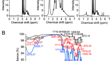 where\(\quad {I}_{0}\) denotes the Brillouin scattering intensity, \({\omega }_{B}\) the Brillouin frequency shift (BFS), \({{{\Delta }}}_{B}\) the corresponding peak half width (Brillouin line width; BLW), and \(B\) a common baseline mainly representing the detector dark count rate. Commonly, the signal showed the centered elastically scattered Rayleigh peak and two pairs of symmetric peaks corresponding to water and the cuticle.