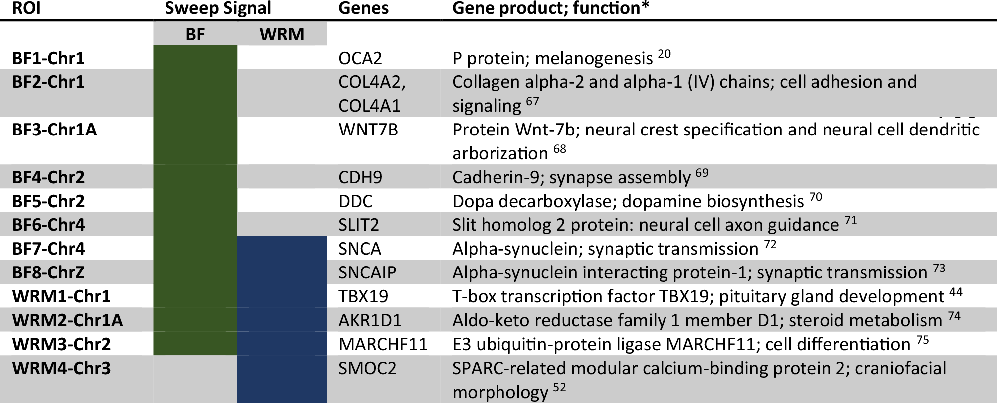 Table 2 Candidate genes for the domestication syndrome within ROIs