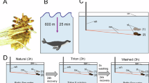 On land, like any other terrestrial insect, lice can breathe atmospheric air through their spiracles and diffuse gases through their well-developed tracheal system. When submerged, their elaborate closure system can prevent water from entering the tracheal system20, which maintains a certain reserve of oxygen. Our oxygen consumption measurements indicate that lice do consume oxygen from the water. We do not know whether this uptake requires a plastron or not. The possible existence of a plastron was proposed by Hinton14 to explain the possible role of the scales that cover the louse’s body. However, no plastron has been observed in seal lice. On the other hand, even if present, the plastron, like the entire tracheal system, would only be functional near the water surface because it would collapse under high hydrostatic pressure. Regardless of the presence of a plastron, a tegumentary gas exchange could only occur near the surface, where the concentration gradient favours the entry of oxygen into the louse’s body. The low level of available oxygen at great depths could affect the uptake of oxygen from the water. Lice may use haemoglobin-bound oxygen when their hosts dive. Insect haemoglobins have a much higher affinity for oxygen than vertebrate haemoglobins. Oxygen is rapidly and tightly bound and only released when the surrounding tissues have very low levels. This property allows insects exposed to hypoxia, such as benthic chironomids, parasitic botflies, or bubble diving bugs, to tolerate the absence of oxygen for relatively long periods. In the case of lice, this can occur when hosts dive to depths of hundreds or thousands of metres.