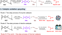 FA is a bio-based compound derived from hemicelluloses (sources of pentoses) that can be converted to 2-(ethoxymethyl)furan (2EMF) and ethyl levulinate (EL) in ethanol, in the presence of acid catalysts. 2EMF is an intermediate of the conversion of FA to EL50,51, which may occur through various pathways, including the etherification of FA to 2EMF followed by 2EMF ring-opening to EL27. The niobium oxides synthesized via aldol condensation efficiently convert FA, leading to high total yields of EL plus 2EMF (Ytot) and high EL yields (YEL) of 69–74% within 3 h at 140 °C (Fig. 7, Supplementary Table 2, Supplementary Fig. 14). Furthermore, these catalysts are more active than Nb2O5·nH2O and com-Nb2O5 (Fig. 7), converting FA at higher rates. The carbon support alone was considerably less active than Nb2O5-hGO, leading only to 41% of Ytot at 140 °C for 3 h. Nb2O5-NP exhibits the best catalytic performance, leading to the highest EL and total yields.