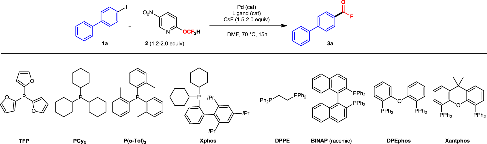 Table 1 Optimization of the reaction conditions for the fluoro-carbonylation of 1 and 2.