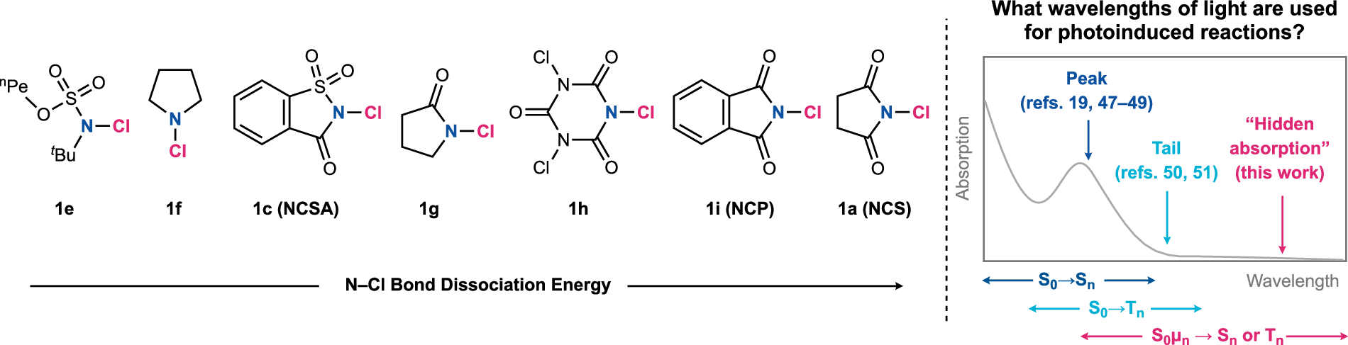 Table 1 DFT and TD-DFT calculated transitions from the ground state (S0) to the singlet (S1) and triplet (T1) excited states and BDEs of compounds with N–Cl bond