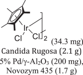 | 92 | 99 | 1 | 1 | 15.4 | 5% Pd/γ-Al2O3 (200 mg), Novozym 435 (1.7 g) | Hii48 |
