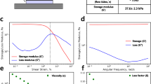 We characterized the density, viscosity, and interfacial tension between the two fluids using the following techniques. Density measurements were made using an Anton Parr DMA 4500 density meter over the range 10 °C to 25 °C for TMP-TG-E finding a variation of the mass density of 0.00043 g cm−3 per 0.5 °C. The density of PDMS oils was obtained from the manufacturer (Alfa Aesar), and the influence of temperature on the density was obtained from Roberts et al.22. The viscosity of all liquids used in the experiments was measured using a TA Instruments CSL2 100 rheometer across the temperature range 20 °C to 22 °C. We measured the interfacial tension between TMP-TG-E and PDMS using the pendant droplet method with a Krüss DSA 10-MK2 equipment at a temperature of 20 °C. We took 40 separate measurements of the interfacial tension for two different viscosity grades of PDMS finding that the interfacial tension does not vary significantly with oil viscosity. The average measured value of the interfacial tension is γ = 6.2 ± 0.3 mN m−1.