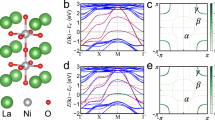 Density functional-based electronic structures were produced by the precise linearized augmented planewave code Wien2k69,70 using the generalized gradient functional for exchange and correlation. The atomic coordinates used for these calculations were the same as listed above. The sphere sizes were, in Bohr: La, 2.50; Ni, 2.40; Ga, 2.12. The plane-wave cutoff Kmax was determined by RKmax = 7, and the k-point mesh for self-consistency was 14 × 14 × 14. Exchange and correlation contributions to the energy and potential were included by using the generalized gradient approximation functional71. Effects of spin-orbit coupling were included by using second variation method as implemented in WIEN2k.