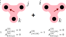 $${L}_{ij}^{(1)}={\delta }_{ij}\mathop{\sum }\limits_{k=1}^{N}{a}_{ik}^{(1)}-{a}_{ij}^{(1)},$$(41)$${L}_{ij}^{(2)}=-\mathop{\sum }\limits_{k=1}^{N}{a}_{ijk}^{(2)}\quad (i\,\ne\, j),\quad {L}_{ii}^{(2)}=-\mathop{\sum}\limits_{j\ne i}{L}_{ij}^{(2)},$$(42)to retain the zero row-sum property. It is consistent with that in30 for the second-order.