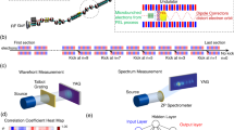 The PES array is located far from any x-ray focus points and the SASE beam spot size was estimated to be ~5 mm in diameter, ensuring the photoionization remains within the linear regime. The number of photoelectrons generated is proportional to the product of the gas density and the photoionization cross-section. The base background gas pressure in the chamber is 1 × 10−8 mbar and the pressure of the gas injected was adjustable from 1 × 10−7 mbar to 1 × 10−5 mbar. The gas density was set to 2.5 × 10−7 during our experiment. The retardation voltage of 30 V slowed photoelectrons with 40 eV initial kinetic energy to 10 eV. The total time-of-flight for Ne 1s photoelectrons from the interaction region to the detector is ~60 ns (see ToF signals in Supplementary Note 1). The detector signals from the microchannel plate (MCP) stack were recorded every 0.5 ns. The electrons were slowed in order to create a 1s photoelectron peak with more ToF sampling points while keeping the signal well above the background.