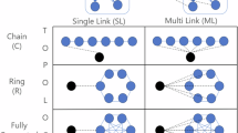 $$H=\mathop{\sum }\limits_{ij=1}^{{N}_{R}+1}{J}_{ij}\left({\sigma }_{i}^{+}{\sigma }_{j}^{-}+{\sigma }_{j}^{+}{\sigma }_{i}^{-}\right)+\mathop{\sum }\limits_{i=1}^{{N}_{R}}{{{\Delta }}}_{i}{\sigma }_{i}^{x},$$(24)with random coupling constants Jij drawn uniformly at random from the interval [−1, 1], and driving coefficients Δi drawn uniformly at random from [0, 1]. We consider different network connectivities; in particular we study (1) a linear chain with nearest-neighbour interactions, (2) a fully connected reservoir, with a single node connected to the input, and finally (3) a fully connected reservoir where each node is connected to the input. If measurements are again performed in the computational basis of the reservoir, that is \({\mu }_{k}=\left\vert k\right\rangle \left\langle k\right\vert\) with \(k=1,...,{2}^{{N}_{R}}\), the corresponding effective measurements will have the form