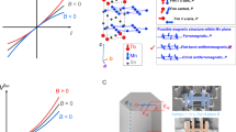 We measured the B dependence of ISD for various sets of (VSD, VG) and observed a zero-B dip structure, as shown in Fig. 3b. This dip structure was maintained up to room temperature under certain (VSD, VG) conditions that kept the transport conditions the same (Fig. 3c–f; further details in Supplementary Note 5). Because of the small signal ratio and large noise at room temperature, the B dependence of ISD was measured repeatedly for 1000 times, and the average was considered. These zero-B dip structures can be fitted with Lorentzian curves predicted by PSB theory under strong SOI conditions28, suggesting a PSB from low temperatures up to room temperature. The room-temperature PSB in this device can be understood using the scheme shown in Fig. 1b, c.