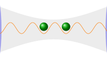 where \({{\mathcal{S}}}={\{0,1\}}^{2}\) is the low-energy manifold corresponding to the ground and first excited atomic states, and \(\overline{{{\mathcal{S}}}}={{\mathbb{N}}}^{2}\setminus {{\mathcal{S}}}\) is its complementary subspace. This implies that \({\hat{H}}_{{{\rm{int,D}}}}^{{{\rm{L}}}}\) has elements only in the low-energy subspace, while \({\hat{H}}_{{{\rm{int,D}}}}^{{{\rm{H}}}}\) contains elements in the high-energy subspace.