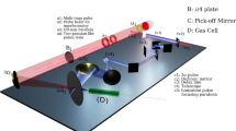 The experiment was performed using the 200 TW Ti:sapphire (λ = 800 nm) laser facility at the Laboratory for Laser Plasma in Shanghai Jiao Tong University. The 1.58J p-polarized laser pulse with a duration of \(\tau =30{\mbox{fs}}\) (full width at half maximum, FWHM) is delivered as a driver laser in the experiment. The laser pulse is focused by an f /20 off-axis parabolic (OAP) mirror to a Gaussian-like spot size, containing 30% energy with an FWHM diameter of 28 μm. Thus, the focused laser intensity can reach 2.6 × 1018 W cm−2, corresponding to a normalized vector potential of \({a}_{0}=e{{{{\bf{A}}}}}_{{{{\bf{0}}}}}/{m}_{e}{c}^{2}{\mbox{=}}1.25\), where \({{{{\bf{A}}}}}_{{{{\bf{0}}}}}\) is the amplitude of the laser vector potential, e is the elementary charge, me is the classical electron mass, and c is the speed of light in vacuum. A laser pulse with an energy of 0.34 J, tightly focused through an f/2 OAP, serves as the trigger laser. The spot size of the trigger laser is 4 µm in FWHM, resulting in a laser intensity of 2.7 × 1019 W cm−2 and a0 = 3.5.