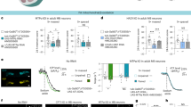 Because LDs are an internal reservoir of KB precursors, we aimed to confirm the hypothesis that the cortex glia are a local provider of KBs to neurons, by assessing the LD content of fly brains in which KB production has been specifically downregulated in cortex glia. We used the BODIPY 493/503 probe to stain LDs, as previously used in the Drosophila visual system43. LDs of approximately 0.2 µm² in area could be observed in fed flies, in the brain region of neuronal somas where they are enwrapped by cortex glial processes (Fig. 2e–g and Extended Data Fig. 4e). In fed flies, downregulation of the KB production pathway genes Bmm, CPT1 and HMGS in cortex glia did not change the mean area of LDs as compared to the genotypic controls, suggesting that LDs are not used to synthesize KBs in fed flies. On the contrary, in the starved condition, the downregulation of Bmm, CPT1 or HMGS significantly increased the mean area of LDs compared to the genotypic controls (Fig. 2e–g for Bmm, CPT1 or HMGS). Importantly, in genotypic controls, starvation did not induce any increase in cortex glia LD content, suggesting that FA uptake and storage in LDs and their consumption are at steady state. Altogether, these data suggest that when KB production is downregulated in cortex glia during starvation, FAs from LDs are not efficiently mobilized; that is, instead of being used to provide energy and produce KBs, they just accumulate. Thus, mobilization of cortex glia FA internal stores during starvation and their use for ketogenesis constitute an entire metabolic pathway that is required to sustain K-AM formation in neurons, strongly suggesting that cortex glia are the main local provider of KBs to support neuronal function during starvation.