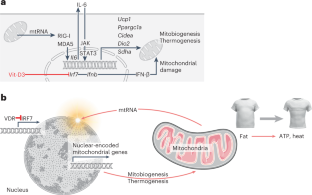 Mitochondria of young adipocytes release RNA molecules that serve as signals to stimulate the transcription of nuclear-encoded genes for mitobiogenesis and thermogenesis. Mitochondrial RNA (mtRNA) efflux thus establishes retrograde mitochondria–nucleus signalling and triggers heat production from fat. Stimulating this signalling protects against obesity in mice.