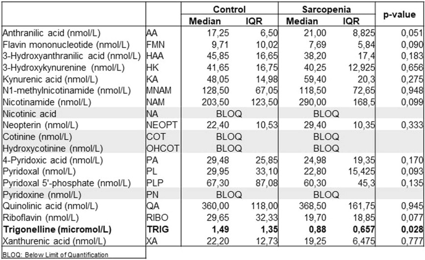 1. The serum metabolites of kynurenine/NAD+ were measured in the Singapore sarcopenia study of MEMOSA using LC–MS/MS (n = 40).