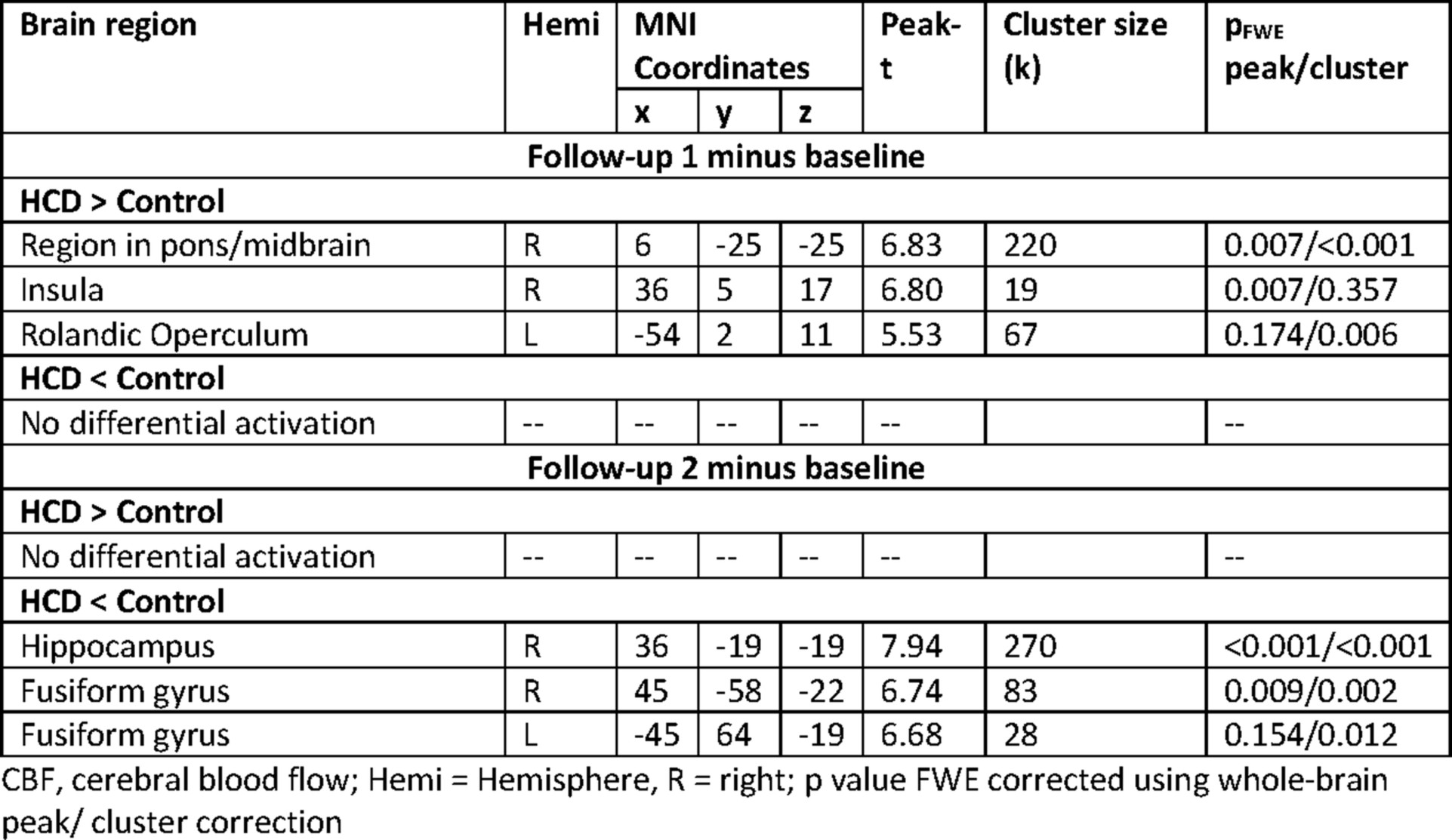 Extended Data Table 4 Changes in brain insulin activity (CBF) from before to after the intervention