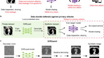 We remark that the effectiveness of the DP protection against attacks at a fixed clipping norm, batch size, training duration and training set size depends only on the noise multiplier. This is a consequence of how DP budgets are accounted. For example, in the Rényi-DP (RDP) accountant40 used in our work, one step is \((\alpha ,{q}^{2}\frac{2\alpha {C}^{2}}{{\sigma }^{2}})\) -RDP for appropriate values of the parameters α the order of the Rényi divergence, q, the subsampling rate (that is, batch size divided by training set size), C, the clip gradient norm and σ, the noise multiplier. However, our empirical results suggest that for all other factors being constant, even small noise multipliers, which imply very large privacy budgets, are sufficient to protect against reconstruction attacks and facilitate high-performing AI models. We also observed that the AI performance loss introduced by DP tends to be smaller on larger datasets due to less injected noise per sample and more information to achieve a certain privacy budget at consistent hyper-parameters. Yet, many medical datasets are inherently small. This can have negative consequences for the applicability of such networks in clinical practice. For models to be effectively trained on such challenging datasets, when pre-training is not possible for reasons of data availability or computational resources, our techniques reach a limit indicating a potential need to either accept elevated privacy risks or obtain access to more data. The solution to both problems might go hand in hand with more robust mathematical guarantees safeguarding data privacy. In such a scenario, we anticipate that patients may be more inclined to share their data, thereby allowing large-scale medical AI training. In such a scenario, the privacy–performance trade-offs presented might even be more favourable than our findings indicate. This would be complemented by a workflow where multiple PETs are employed to enable various aspects to privacy. For example, a system using federated learning to assert the data governance remains at the original hospital, secure aggregation to conceal contributions from different sites and DP to limit the private information of single patients demonstrated in previous works36 would provide a holistic workflow.